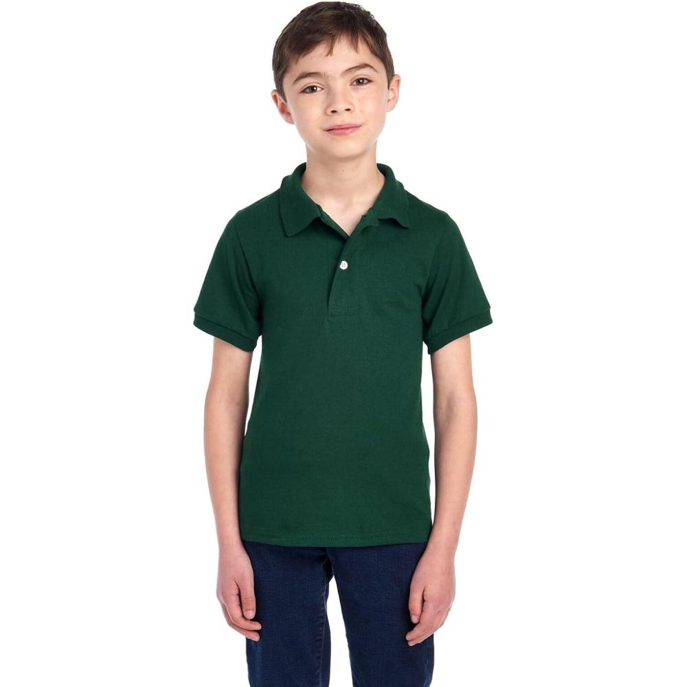 Jerzees Boys’ Youth Short Sleeve Polo Shirts, Cotton Blend, Two Button Closure, Regular Fit, Sizes S-XL(Forest Green)