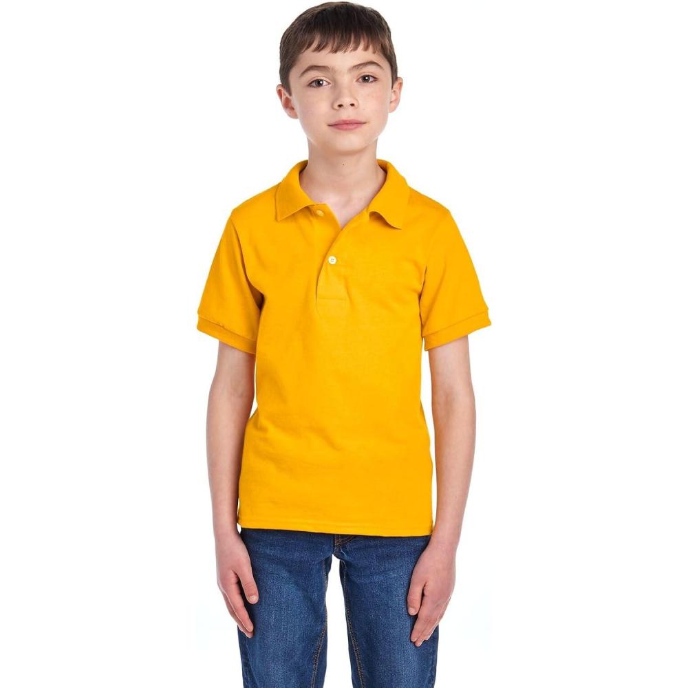 Jerzees Boys’ Youth Short Sleeve Polo Shirts, Cotton Blend, Two Button Closure, Regular Fit, Sizes S-XL(Gold)
