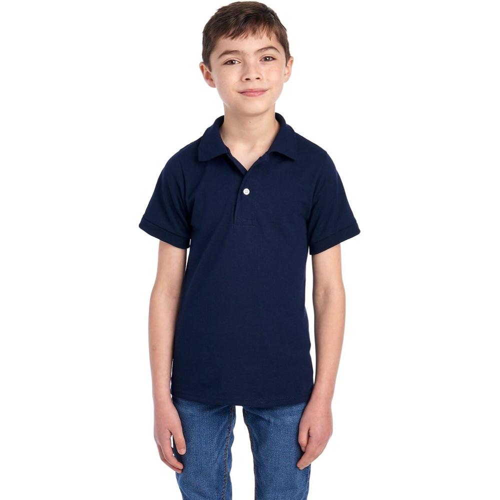 Jerzees Boys’ Youth Short Sleeve Polo Shirts, Cotton Blend, Two Button Closure, Regular Fit, Sizes S-XL(Jnavy)
