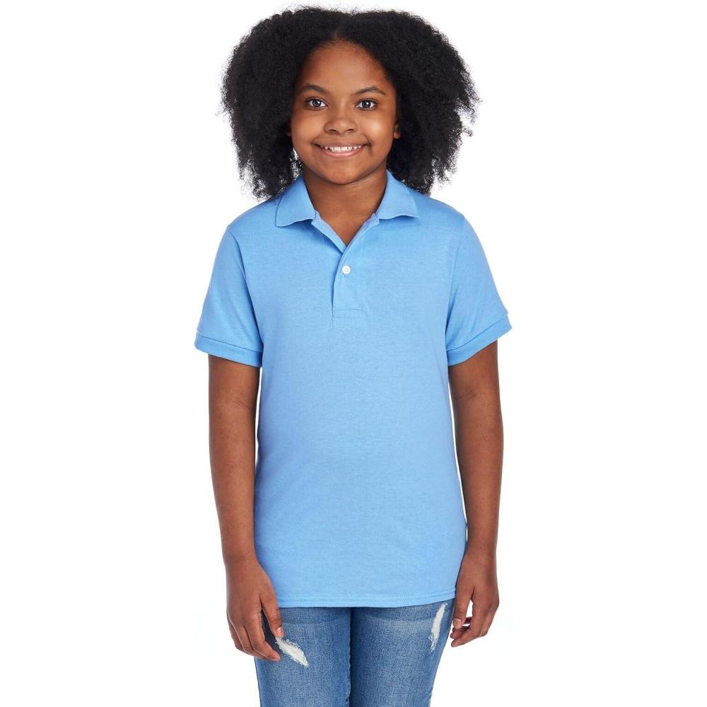 Jerzees Boys’ Youth Short Sleeve Polo Shirts, Cotton Blend, Two Button Closure, Regular Fit, Sizes S-XL(Light Blue)