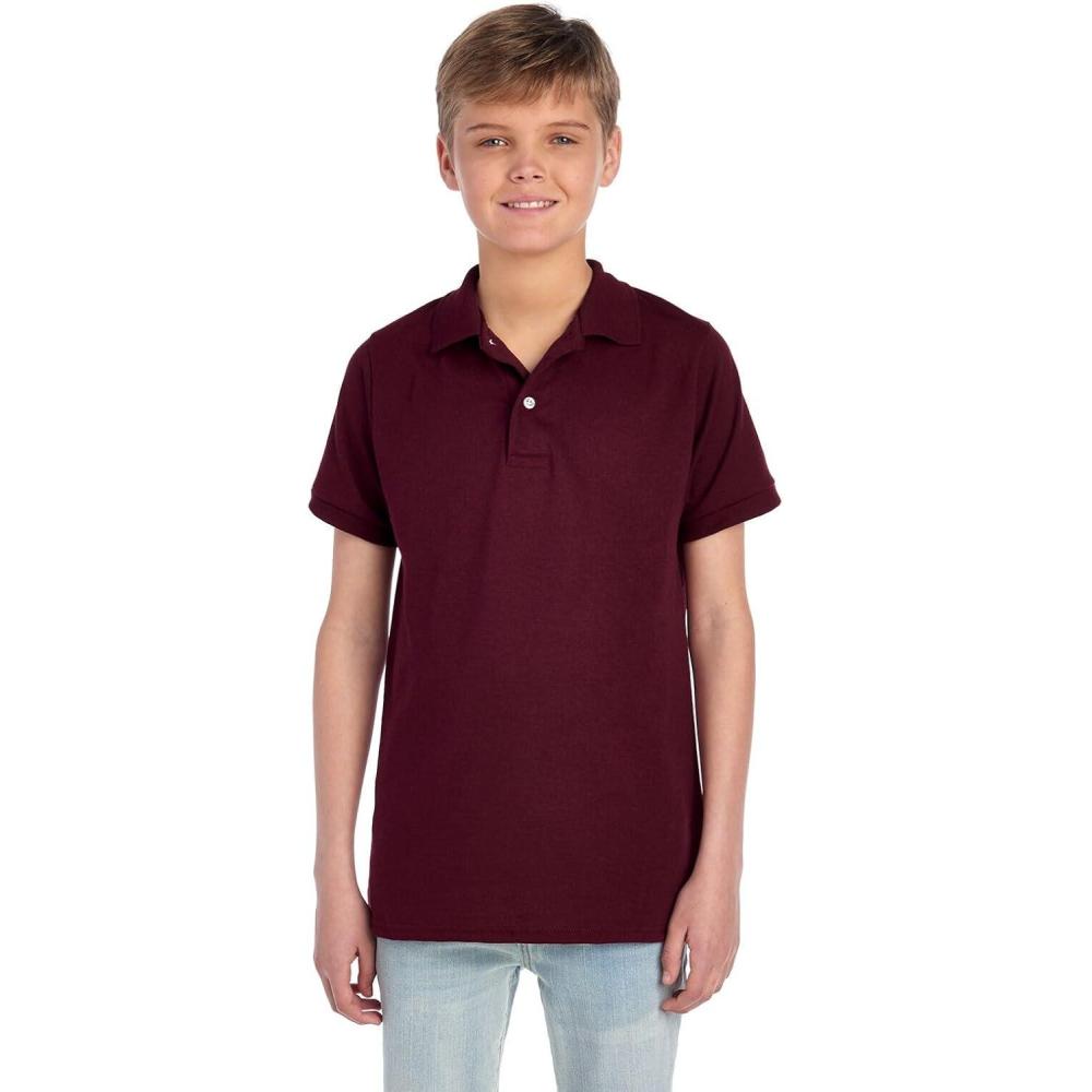 Jerzees Boys’ Youth Short Sleeve Polo Shirts, Cotton Blend, Two Button Closure, Regular Fit, Sizes S-XL(Maroon)