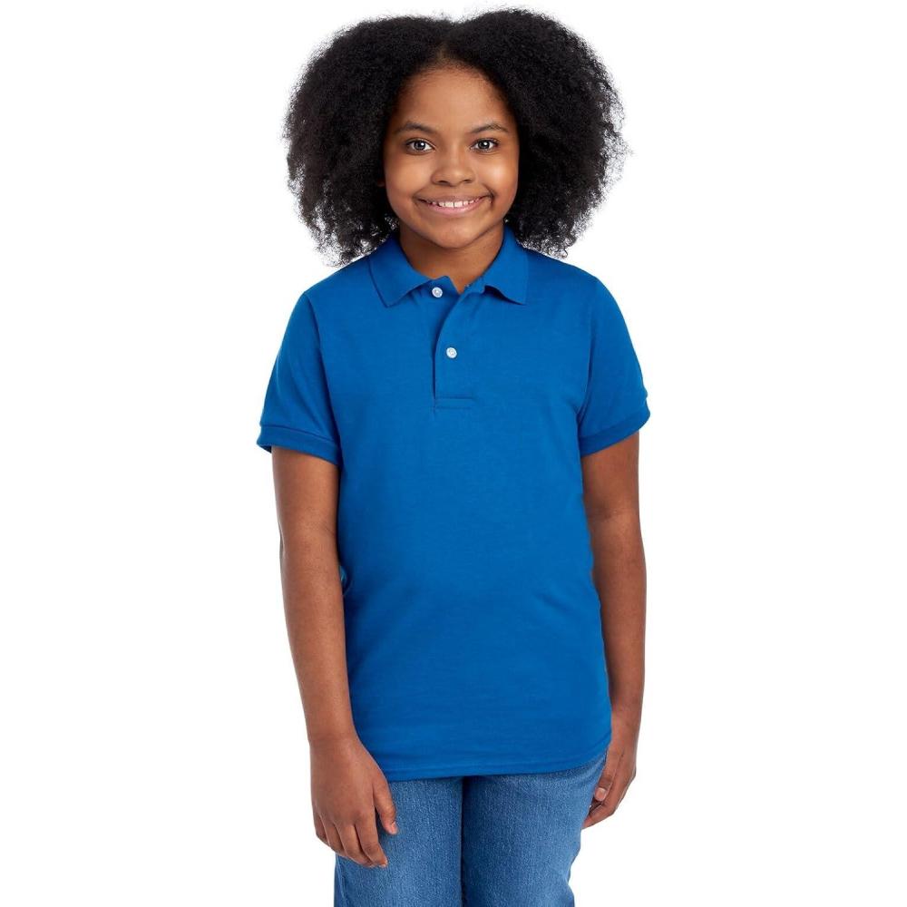 Jerzees Boys’ Youth Short Sleeve Polo Shirts, Cotton Blend, Two Button Closure, Regular Fit, Sizes S-XL(Royal)