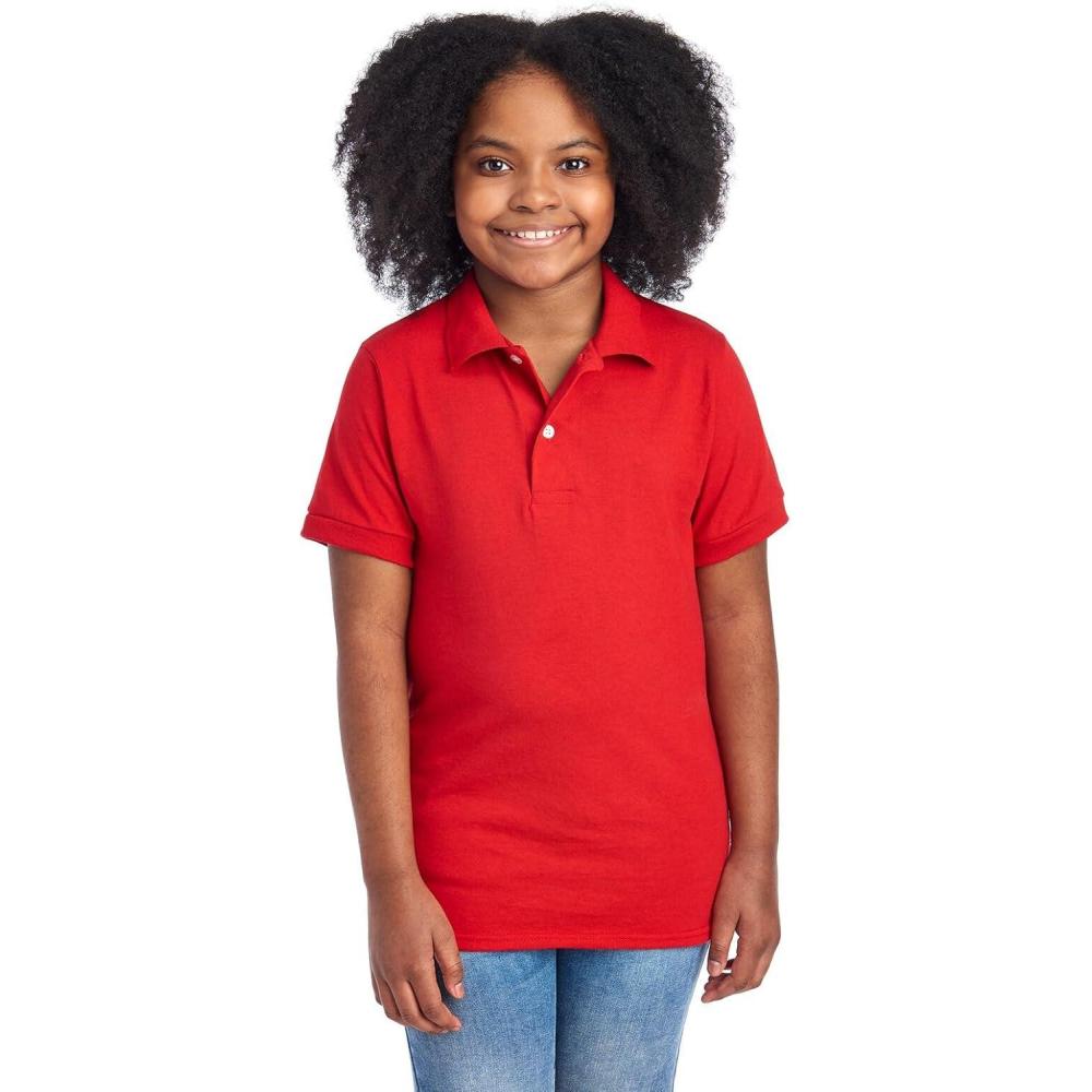 Jerzees Boys’ Youth Short Sleeve Polo Shirts, Cotton Blend, Two Button Closure, Regular Fit, Sizes S-XL(True Red)